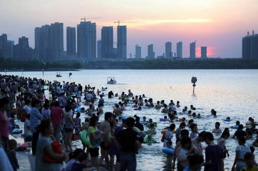 Des chinois s'apprêtent à se baigner dans la rivière Yangtze, à proximité du lac Tai de Suzhou, le 26 juillet 2012 © CHINA OUT AFP PHOTO / STR