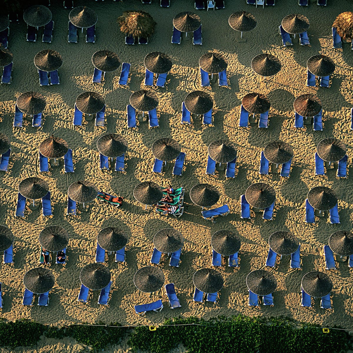 Parasols sur une plage près d’Agia Napa, District de Famagouste, Chypre (34°59’ N - 33°54’ E) © Yann Arthus-Bertrand