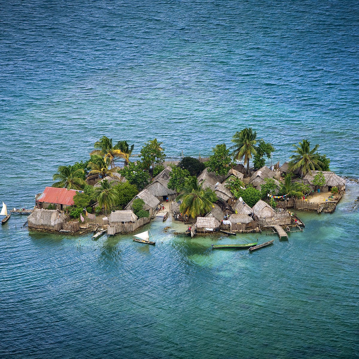Habitations des Indiens Kuna, Iles Robeson, archipel des San Blas, Panama (9°31’ N – 79°03’ W) © Yann Arthus-Bertrand