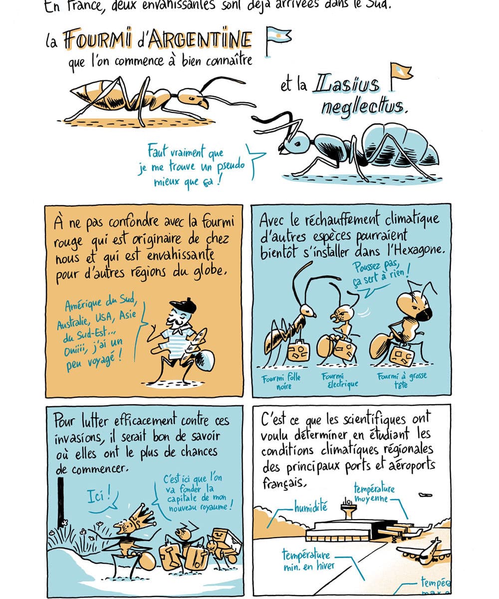Le scientifique Franck Courchamp et l’illustrateur Mathieu Ughetti se sont associés pour créer la bande dessinée « La guerre des fourmis » qui plonge le lecteur dans ce monde méconnu au fil de six épisodes aussi haletants qu’instructifs.
