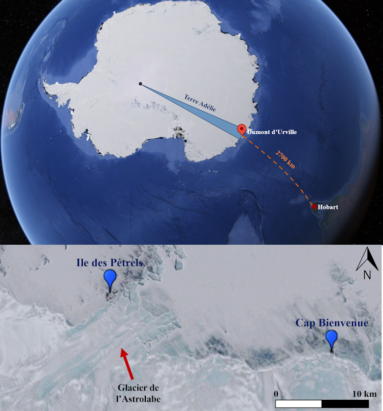 Dans une étude publiée en 2020 dans la revue scientifique Marine Ecology Progress Series, nous avons ainsi cherché à comparer les stratégies alimentaires des manchots Adélie de l’île des Pétrels à ceux de Cap Bienvenue.