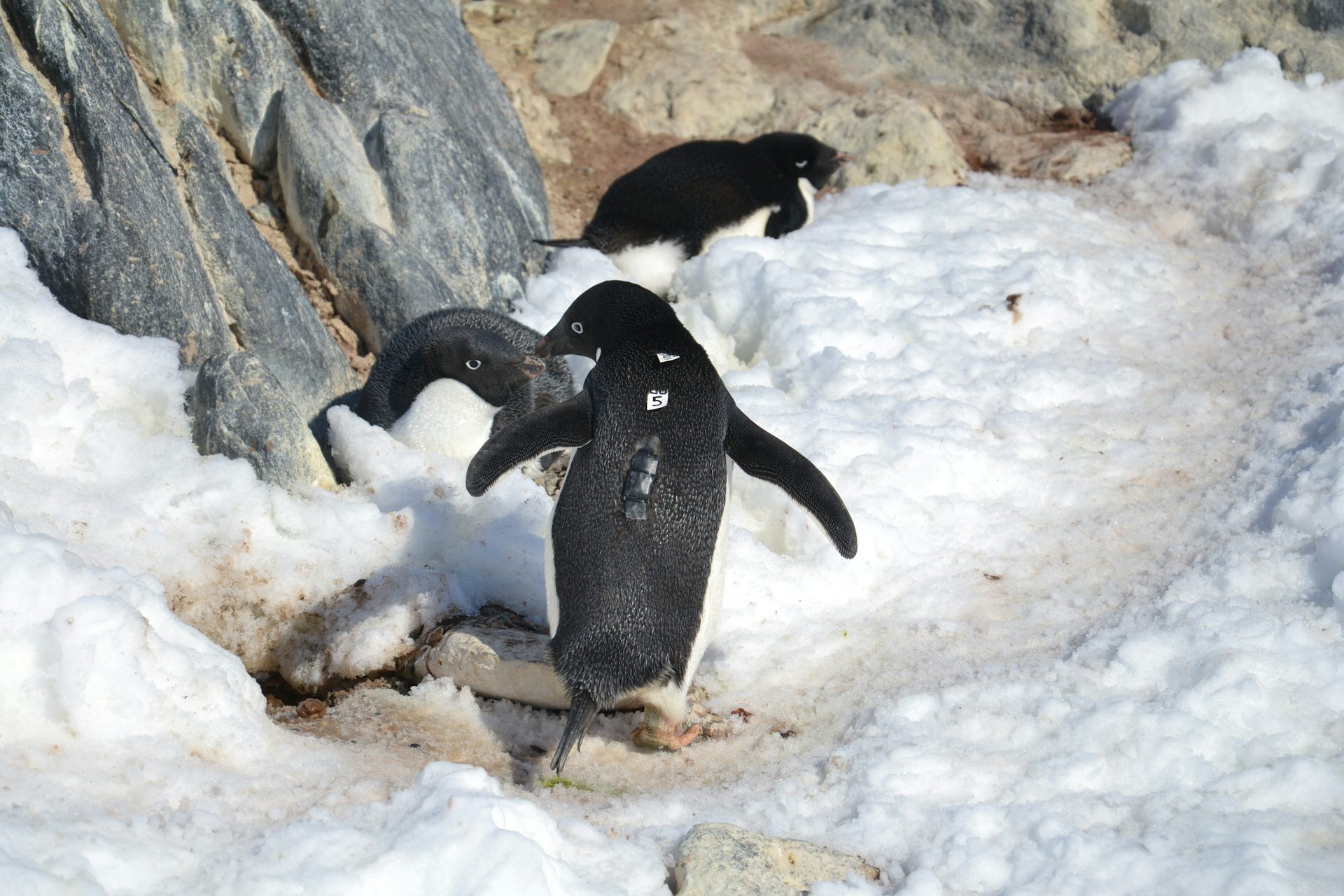 Les manchots Adélie sont capturés sur leur nid pendant que leur partenaire garde les œufs. Les GPS sont fixés par du scotch résistant à l’eau sur les plumes de leur dos. À leur retour au nid après leur voyage en mer, ils sont recapturés afin de récupérer le matériel. Des prises de sang sont également prélevées au retour des animaux.