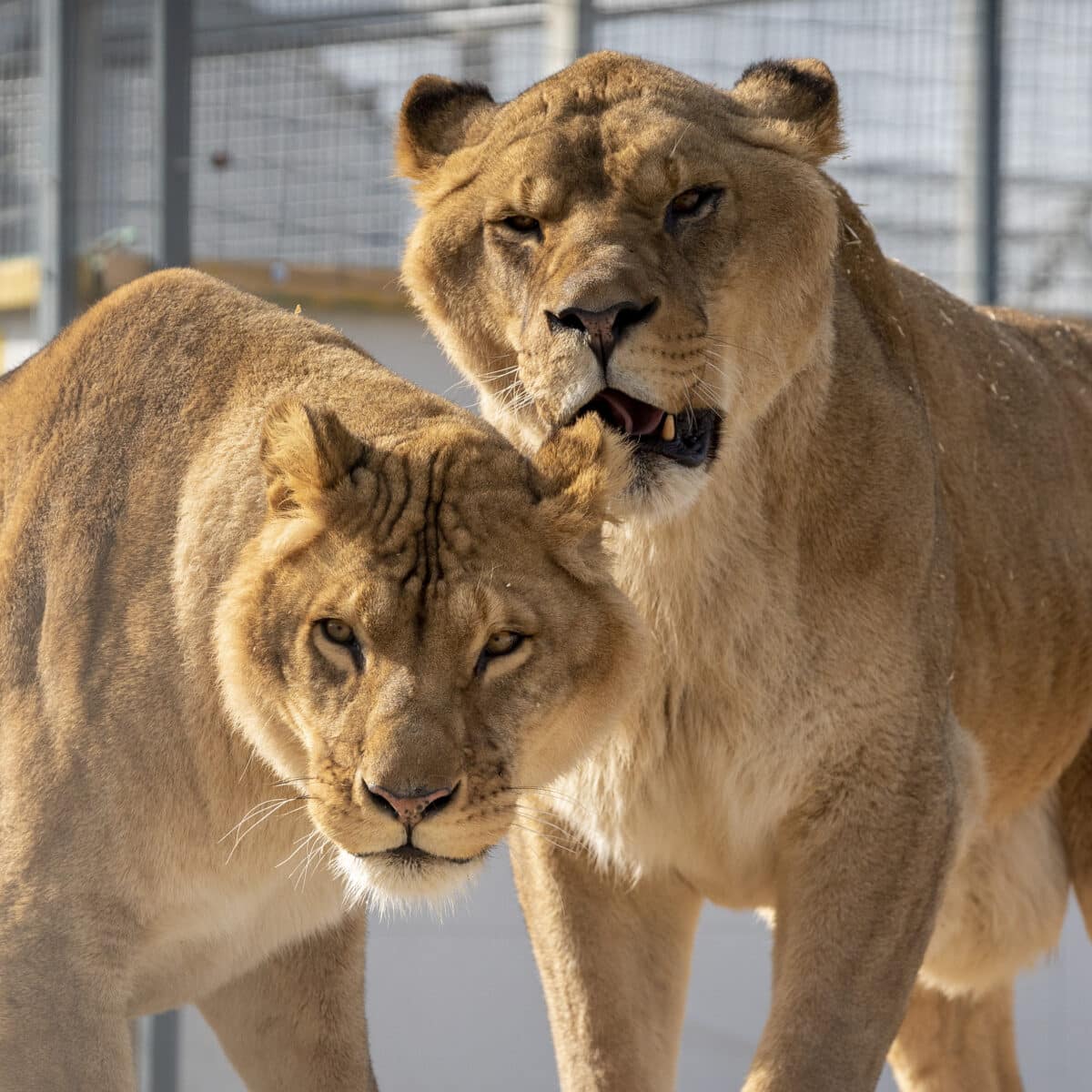 En cette fin novembre 2020, le parc est encore en chantier : les ouvriers travaillent sous l’œil des lions, les engins circulent sans parvenir à masquer les cris des perroquets. Manquent le bitume sur les sentiers, les plantations ne sont pas terminées… Mais pour Patrick, le plus dur est fait. S’il n’y a pas de buvette ou de restaurant, les Violas ont prévu un partenariat avec 3 food-trucks ! La reprise des visites est importante car le projet du zoo-parc a toujours été pédagogique. « Aux visiteurs, nous présentons des animaux qui ont tous un nom et une histoire », précise Patrick devant l’enclos de 2 lions venus d’un cirque espagnol. Sans crinière, ils ressemblent à de très grosses femelles et se tiennent bizarrement, les pattes relevées. « Ils n’ont pas de crinière car ils ont été castrés trop jeunes et on leur a également arraché les griffes et entaillé les phalanges. Ils étaient utilisés pour des photos avec les touristes sur des plages ou en boîte de nuit, avant de se retrouver dans un cirque. »