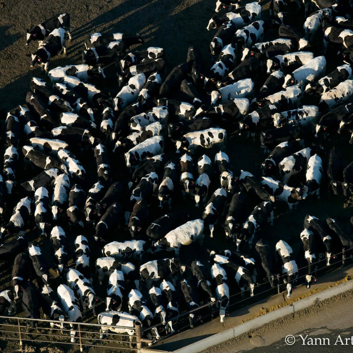 Feeddlot à proximité de Bakersfield, Californie, États-Unis. Les États-Unis sont le premier producteur et consommateur mondial de viande bovine. L’élevage génère un important impact écologique. ©Yann Arthus-Bertrand