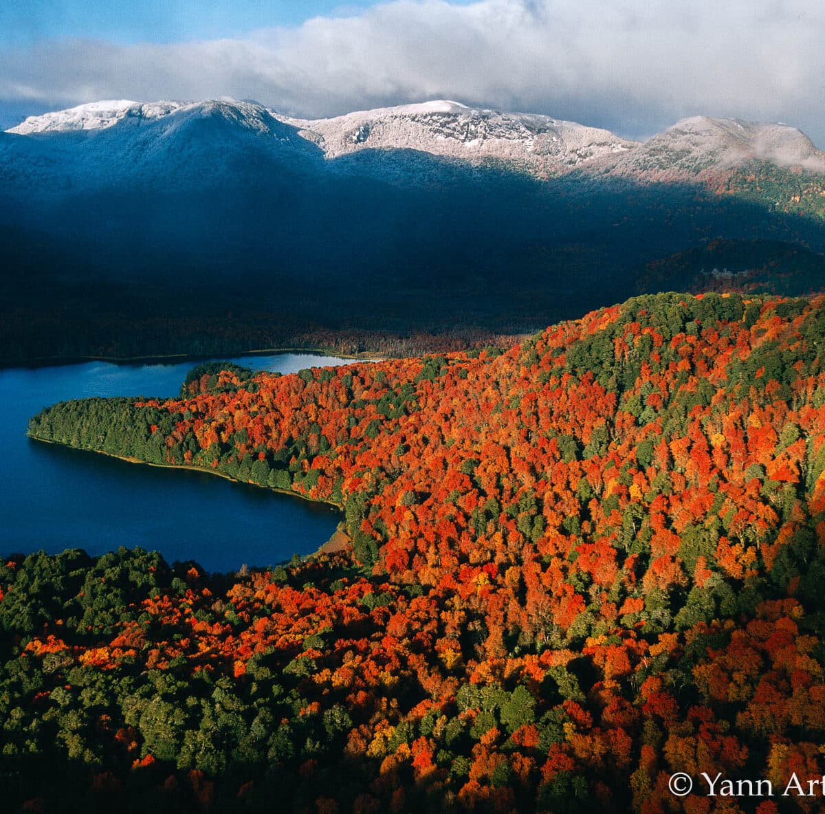 Parc national de Lanin, lac et forêt en automne, province de Neuquen, Argentine. ©Yann Arthus-Bertrand