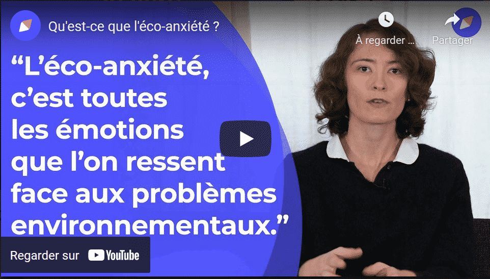 L’éco anxiété, c’est le terme pour définir l’angoisse liée aux changements climatiques et à la dégradation de l’environnement. L’éco anxiété se manifeste par de l’inquiétude, du stress, voire de la peur et une perte de foi en l’humanité… Alice Desbiolles, médecin de santé publique spécialisée en santé environnementale, explique le sujet pour dans cet entretien vidéo le site Doctissimo. Certains considèrent l’anxiété causée par les crises environnementales comme une nouvelle tendance chez les jeunes, l’éco anxiété peut pourtant s’avérer être une véritable pathologie. Selon une étude financée par l’ONG Avaaz, trois quarts des 16-25 ans pensent que la situation environnementale actuelle est sans issue et est amenée à s’empirer.