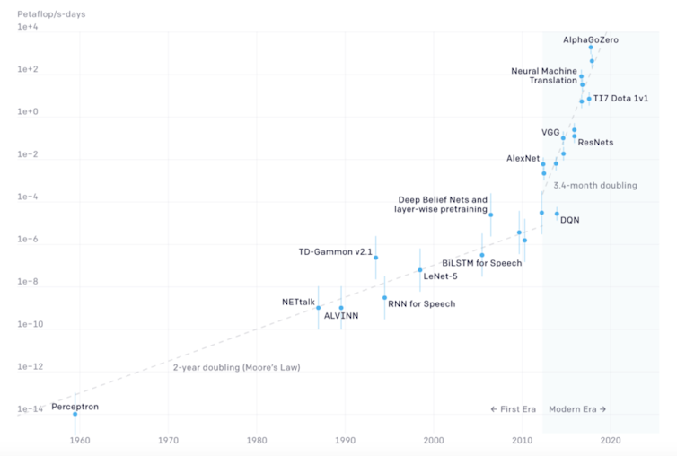 En tête de proue de cet essor se trouve l’apprentissage profond (ou deep learning en anglais), ces fameux « réseaux de neurones artificiels » qui se sont vite diffusés. Cependant, le coût énergétique de cet outil technique est peu connu des utilisateurs alors qu’il est particulièrement préoccupant.