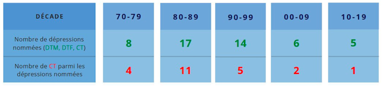 L’analyse depuis 1970 de l’activité cyclonique montre qu’elle est en diminution sur les deux dernières décennies et que cette baisse est plus marquée pour les cyclones tropicaux.