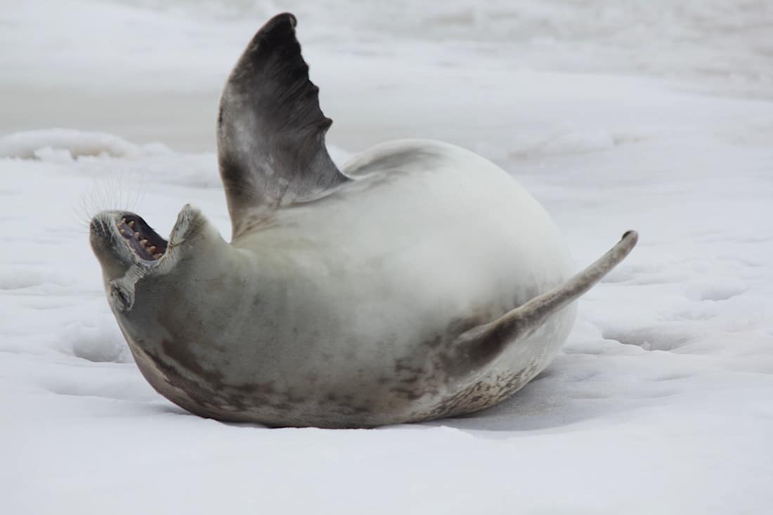 Côté faune, les rencontres avec les phoques ponctuent toujours nos journées. Pas étonnant qu’on ait l’impression qu’ils passent leur journée à dormir : un plongeon de 45 minutes dans l’eau glacée sollicite tellement d’énergie qu’ils doivent ensuite se reposer durant presque 2 heures sur la glace pour retrouver leurs forces !