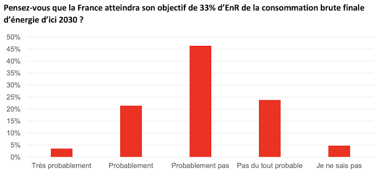 Pour 70 % des spécialistes interrogés dans le cadre du Baromètre, la France n’est pas en mesure d’atteindre ses objectifs 2030 en matière de renouvelables (voir les réponses des experts ci-dessous).
