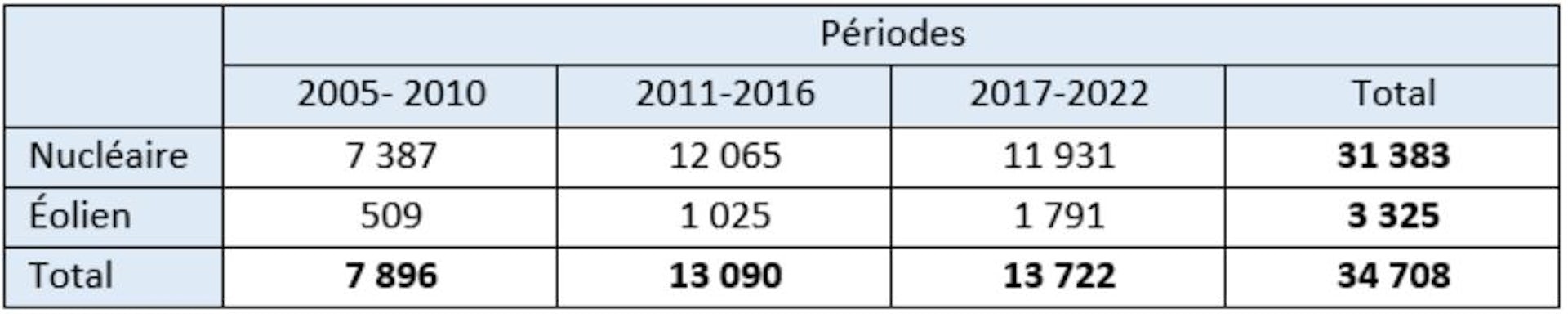 L’analyse du corpus de texte associé aux deux énergies révèle l’apparition d’une classe majeure et récurrente au cours du temps (qui s’intensifie dans le cas de l’éolien) : celle du « mix énergétique ». Les deux énergies, décarbonées, contribuent au même titre à la transition énergétique et l’atteinte de l’objectif de neutralité carbone d’ici à 2050.