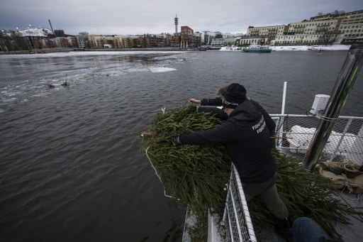 Stockholm (AFP) – Des dizaines de sapins de Noël jetés dans les eaux glacées de Stockholm: en ce matin de janvier, les arbres collectés après les fêtes sont recyclés en habitat pour les espèces aquatiques sauvages de l’archipel suédois.