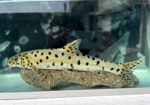 Surnommé « poisson commando » à cause de ses tâches noires rappelant les vêtements de camouflage, le barbeau léopard est considéré en danger critique » par l’Union internationale pour la conservation de la nature (UICN).