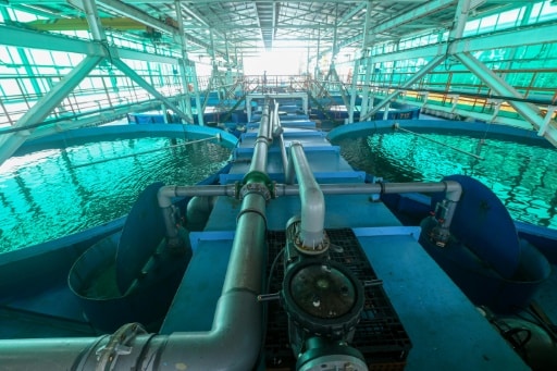 Ces bassins simulent les conditions de l’océan et permettent aux poissons de nager à contre-courant. Cela les rend plus maigres et nutritifs et les protège aussi de certaines maladies, de la prolifération du plancton et des marées noires.