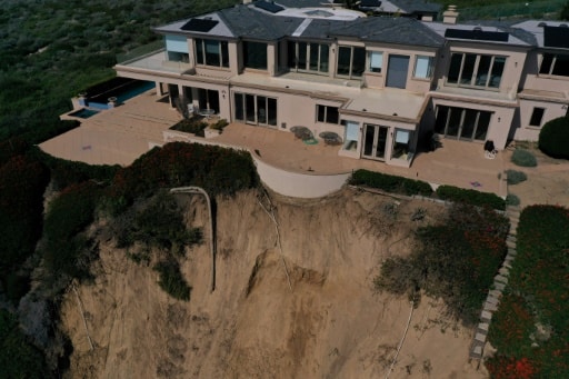 Dana Point (États-Unis) (AFP) – Un morceau de falaise effondré dans l’océan et de luxueuses villas qui se retrouvent au bord du vide : en Californie, la petite ville côtière de Dana Point est le théâtre d’une scène frappante, après la dernière tempête hivernale.