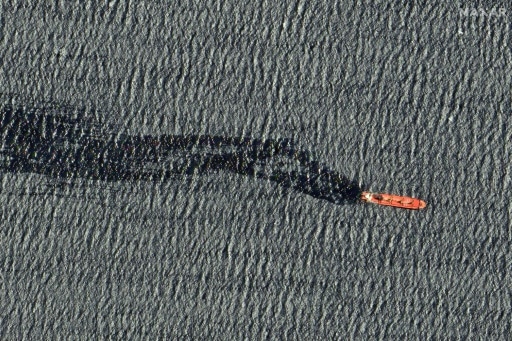 Des images satellites partagées par Maxar Technologies et publiées par l’AFP montrent que du fioul s’échappe du navire.