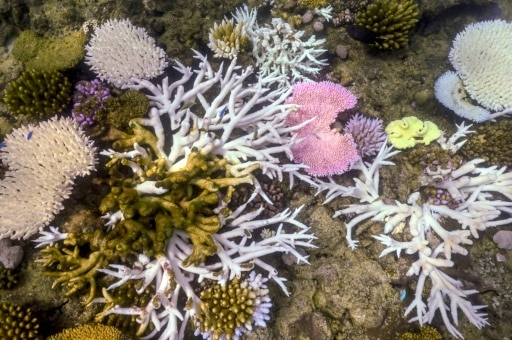 Des coraux blanchis ou morts près de l'île Lizard, sur la Grande Barrière de Corail, à 270 kilomètres de Cairns, le 5 avril 2024 en Australie © AFP/Archives DAVID GRAY