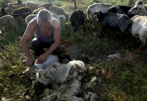 « Ils supportent le froid, mais ils ont beaucoup de problème avec la chaleur, il faut se dépêcher de les débarrasser de leur laine qui les étouffe », explique Syrja Brahimi, un berger de 64 ans, tout en taillant à grands coups de ciseaux dans le pelage des bêtes.