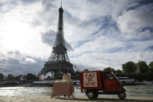 Paris (AFP) – « Qui va se baigner dans la Seine après les JO ? » Le street artiste James Colomina a tenté de vendre des bouteilles d’eau de Seine « finement polluée » mercredi à Paris, pour dénoncer le coût de sa dépollution, avant d’être délogé par la police.