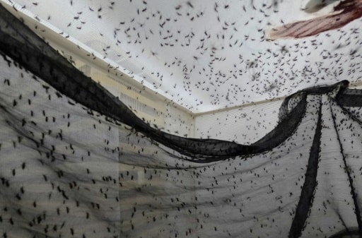 Medellín (Colombie) (AFP) – Au milieu des bocaux remplis de larves stagnant dans l’eau, bourdonnent des nuées de moustiques sous une cage de tissu blanc: une espèce d’usine à moustiques dont certains s’échappent de leur cage et piquent le visiteur.