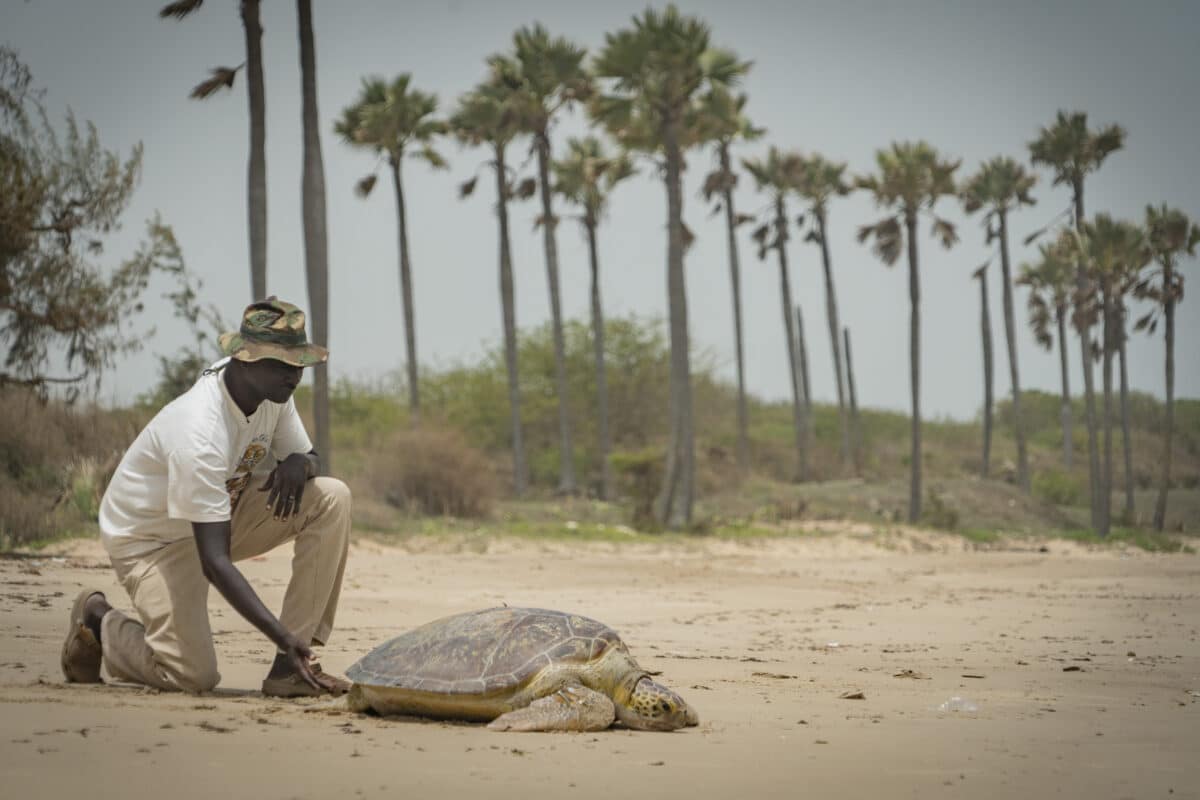 Aujourd’hui, Tomas Diagne s’engage pour venir en aide aux tortues de mer blessées quand elles s’échouent sur les plages au Sénégal. Il explique qu’on trouve 5 espèces de tortues marines au large du pays dont « le statut de péninsule à l’Ouest du continent africain en fait un lieu de convergence des corridors migratoires de tortues marines. Elles parcourent les eaux sénégalaises pour se rendre sur leur site de ponte plus au sud ». Ce sont donc surtout des espèces migratrices qu’on y trouve et très peu viennent enterrer ses œufs sur les plages du pays. Cependant, il arrive souvent qu’elles s’y échouent prises dans les filets de pêche accidentellement. L’écologiste précise : « entre 4000 et 5000 tortues s’échouent sur les côtes en Afrique de l’Ouest chaque année. Pour une tortue marine qui s’échoue et vue sur la plage, on estime que 5 autres meurent en mer en raison des activités humaines. » Parmi les victimes de cette hécatombe figurent la tortue Luth, la tortue verte qui est considérée en danger d’extinction ainsi que la tortue caouanne.