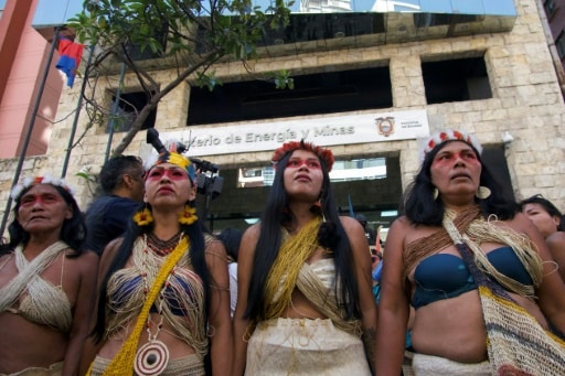 « Nous sommes venus exiger que le (vote) soit respecté à Yasuni », a déclaré Yasacama en clamant « vive Yasuní », lors de la manifestation pacifique d’une cinquantaine d’indigènes et d’écologistes devant le ministère de l’énergie.