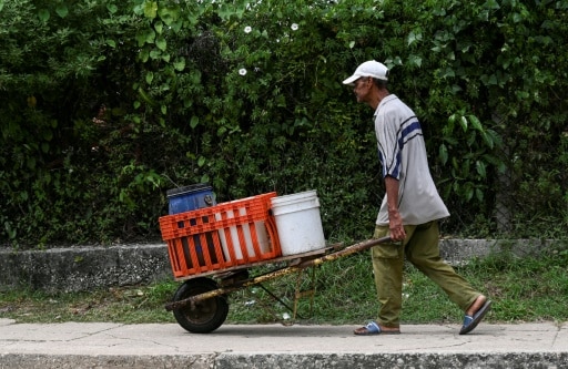 « Si je ne fais pas ça, qu’est-ce que je fais ? Je meurs chez moi de soif et de faim », raconte à l’AFP le retraité en arrivant, haletant et transpirant, dans sa petite maison de bois du quartier de Punta Brava, à 25 kilomètres du centre de La Havane.