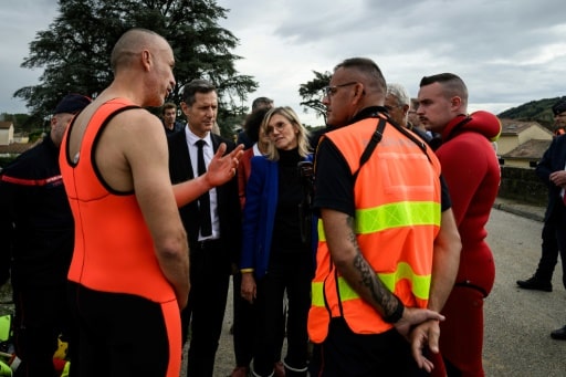 Accompagnée du ministre délégué à la Sécurité du quotidien Nicolas Daragon, Mme Pannier-Runacher a également visité les rues du centre-ville dévastées et s’est rendu aux abords d’un pont emporté par les eaux.