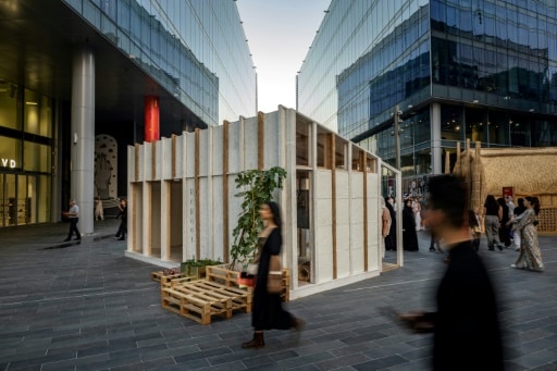 M. Almulla s’est associé à la start-up suisse Oxara, qui fabrique un substitut de ciment à faible teneur en carbone, pour créer des structures construites à partir de béton provenant de bâtiments démolis et de toitures en feuilles de palmier.