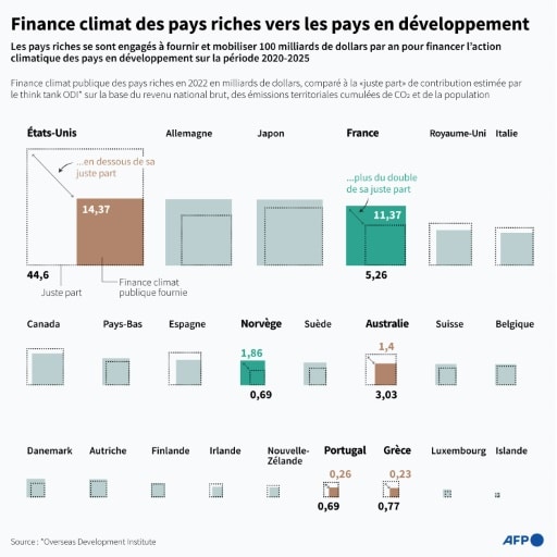 Bakou (AFP) - La journée sera longue à Bakou: les négociateurs de près de 200 pays, frustrés de deux semaines de tractations stériles, attendent vendredi d'ultimes propositions de compromis financier entre pays riches et en développement à la conférence sur le changement climatique de l'ONU en Azerbaïdjan. "Nous percevons des lueurs d'espoir", a résumé la négociatrice allemande Jennifer Morgan. "Mais des lueurs d'espoir ne suffisent pas, car il y a aussi des pilules empoisonnées". Un journaliste de l'AFP a observé dans la soirée de jeudi de nombreuses allées et venues de ministres et diplomates entre les bureaux des délégations brésilienne, européenne, américaine, chinoise... et de la présidence azerbaïdjanaise du sommet. Un délégué européen confirme que les consultations de haut niveau se sont poursuivies jusque très tard dans la nuit. Le prochain projet de texte est promis pour midi heure locale (08H00 GMT), selon la présidence de la COP29, ce qui lancera un nouveau round de pourparlers en vue d'un texte final dans la soirée de vendredi, au dernier moment. Vendredi au petit-déjeuner, le négociateur d'un grand pays a indiqué à l'AFP que le texte était "en train d'être poli". La question centrale, au "stade olympique" de Bakou, est de déterminer combien d'argent les pays développés, au nom de leur responsabilité historique dans le dérèglement climatique, accepteront de transférer aux pays en développement, pour les aider à affronter un climat plus destructeur et à investir dans les énergies bas carbone. "Nous ne demandons qu'1% du PIB mondial. Est-ce trop demander pour sauver des vies?" demande Juan Carlos Monterrey Gomez, négociateur du Panama. Depuis le début du sommet, le 11 novembre, des tempêtes ont tué des Philippines au Honduras, l'Espagne panse ses plaies après des inondations meurtrières, l'Equateur a déclaré l'urgence nationale à cause de la sécheresse et des incendies.... - "Au moins" 500 milliards - L'arrière-plan inédit de cette 29e COP est une année 2024 qui sera vraisemblablement la plus chaude jamais mesurée. Et, neuf ans après l'accord de Paris, l'humanité va encore brûler plus de pétrole, de gaz et de charbon que l'année passée. © AFP Finance climat des pays riches vers les pays en développement © AFP Lise KIENNEMANN, Valentina BRESCHI, Sabrina BLANCHARD Un projet d'accord publié jeudi matin a mécontenté tout le monde car, à la place de chiffres figuraient des "X", et parce qu'il ne tranchait pas entre deux visions très opposées. L'heure est venue des chiffres, mais combien? "Au moins" 500 milliards de dollars par an de la part des pays développés d'ici 2030, demande la plus grande alliance de pays en développement. A comparer aux 116 milliards de finance climatique fournie en 2022. Les Européens, premiers contributeurs mondiaux, répètent qu'ils veulent "continuer à montrer la voie": un terme soigneusement choisi, venu directement de l'accord de Paris, en signe de bonne volonté. Mais le resserrement budgétaire limite leur marge de manœuvre. Les Américains se sont dits "profondément inquiets" du dernier texte. Le commissaire européen Wopke Hoekstra a dénoncé un travail "inacceptable". "Pourrais-je vous demander, s'il vous plaît, de montrer du leadership?" a-t-il lancé au président de la COP29, le ministre Moukhtar Babaïev, ancien cadre de la compagnie pétrolière azerbaïdjanaise. Américains et Européens n'ont pas encore révélé combien ils étaient prêts à payer. - La Chine refuse toute obligation - "Ils tournent en rond dans leurs jeux géopolitiques", a déploré la ministre colombienne Susan Muhamad. Les pays développés négocient en fait en parallèle davantage d'"ambition" pour réduire les émissions de gaz à effet de serre, mais s'opposent aux pays producteurs de pétrole comme l'Arabie saoudite. Le groupe arabe a explicitement prévenu qu'il n'accepterait aucun texte ciblant "les combustibles fossiles". Ce qui fait désordre un an après la COP28 de Dubaï, qui a appelé à lancer la transition vers la sortie des combustibles fossiles. En public, les pays donnent de la voix. Mais en coulisses, Chinois, Occidentaux, Etats insulaires... Tous se parlent encore. Le ministre irlandais Eamon Ryan confie à l'AFP qu'"il y a de l'espace pour un accord". La Chine, clé pour trouver l'équilibre entre Occidentaux et Sud, a appelé "toutes les parties à se retrouver à mi-chemin". Pékin a toutefois tracé une ligne rouge: elle ne veut aucune obligation financière. Pas question de renégocier la règle onusienne de 1992 qui stipule que la responsabilité de la finance climatique incombe aux pays développés. Les délégués se préparent déjà à une prolongation samedi. Une tradition des COP.