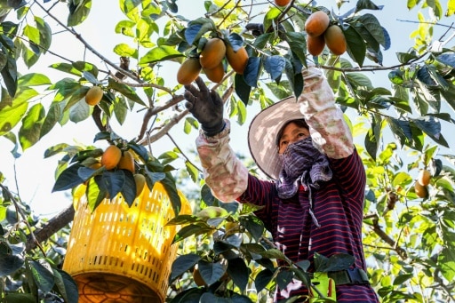 Taichung (Taïwan) (AFP) – Perché sur une échelle dans son immense verger victime d’une saison difficile, Lo Chih-neng, un producteur de kakis de 65 ans, se sert d’un sécateur pour couper les fruits accrochés aux branches.