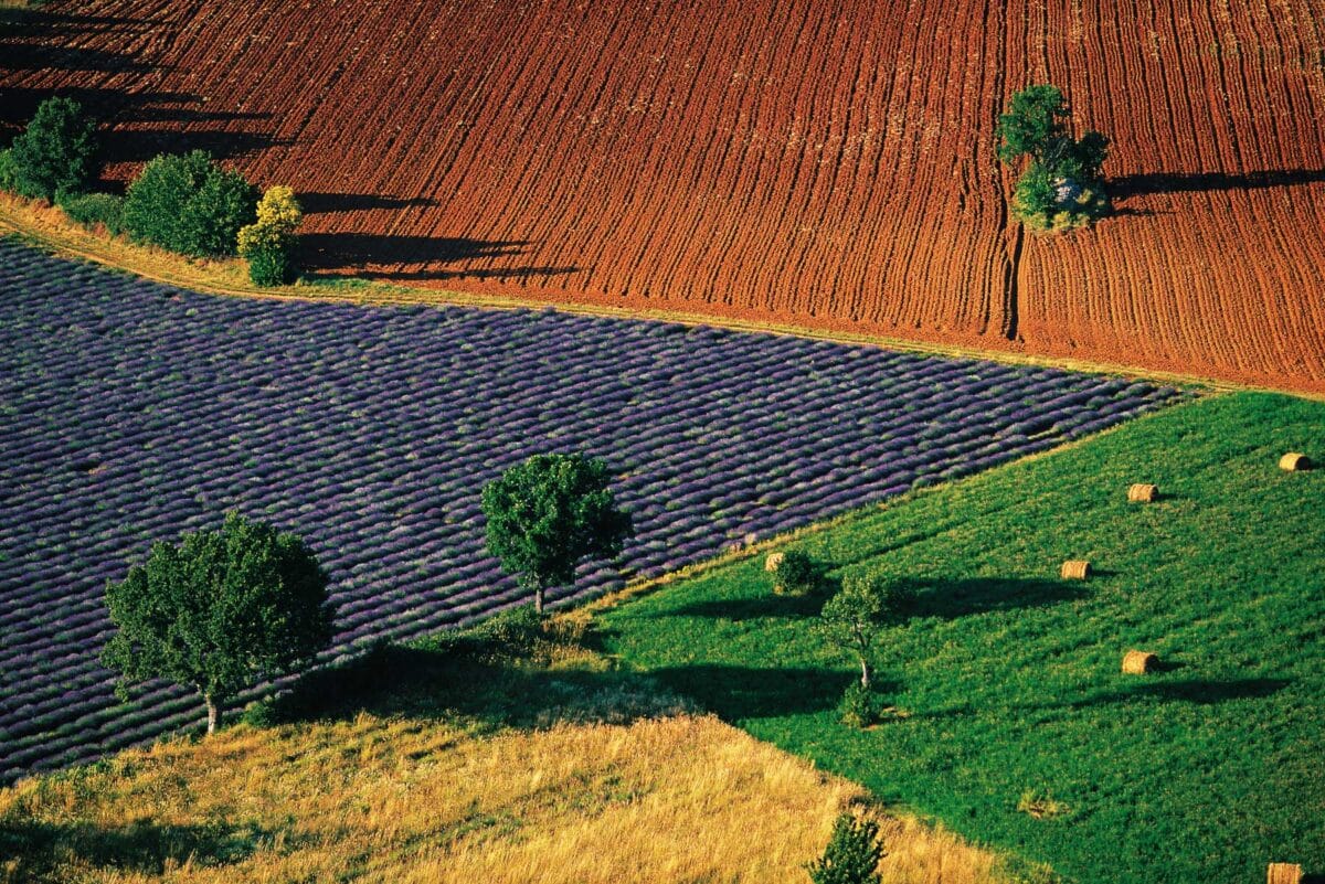 Paysage de champs colorés près de Sarraud, Vaucluse, France (44°01’ N – 5°24’ E). © Yann Arthus-Bertrand
