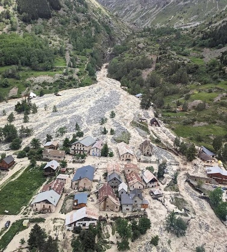 Comme en juin 2024, lorsque le hameau de la Bérarde a été dévasté par des coulées de boues et de débris emportant tout sur son passage. La crue torrentielle était le résultat des précipitations intenses, mais aussi de la rupture d’une poche d’eau sous-glaciaire provenant du glacier voisin de Bonne Pierre.