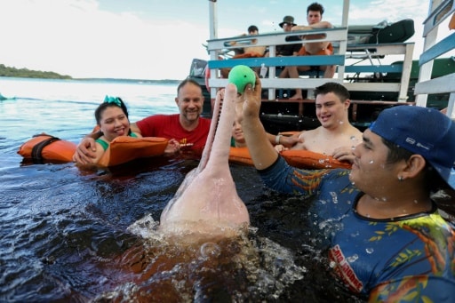 Iranduba (Brésil) (AFP) – Au coeur de l’Amazonie brésilienne, Luiz Felipe, 27 ans, caresse un dauphin rose et pose souriant pour une photo: une thérapie pas comme les autres pour ce jeune homme trisomique qui a vaincu sa peur d’entrer dans l’eau du Rio Negro.