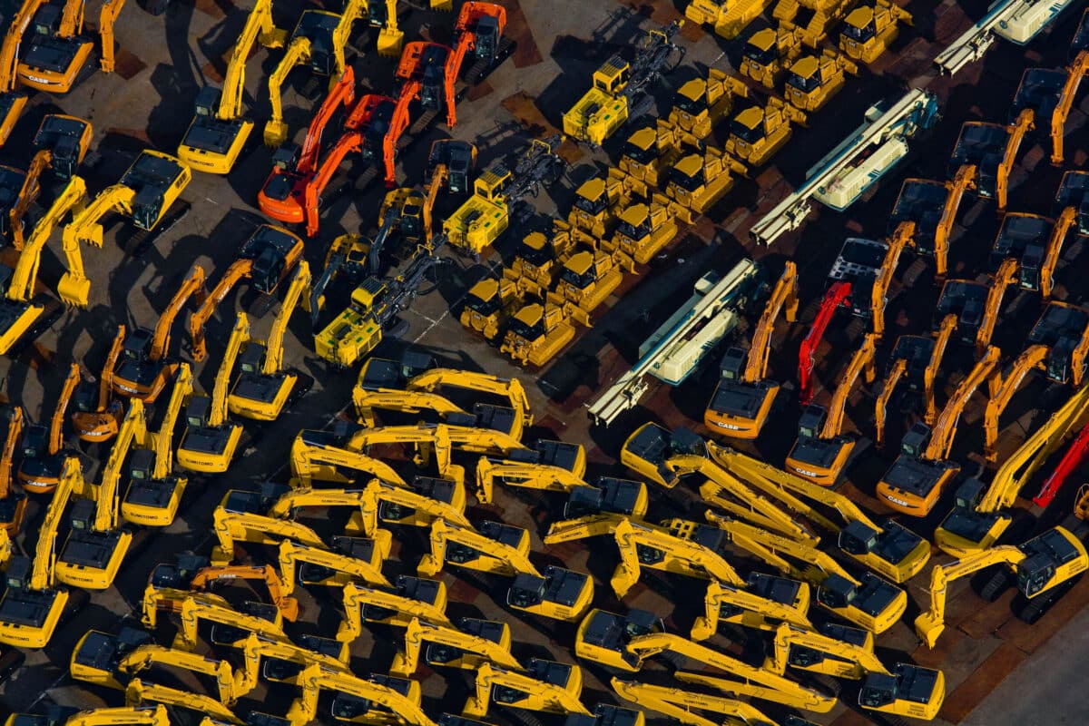 Stockage de pelleteuses dans le port de Yokohama, Kanagawa, île de Honshū, Japon (35°28'12.29""N - 139°39'9.95""E) ©Yann Artus-Bertrand