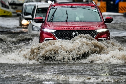 Des conducteurs dans les inondations à Bombay, en Inde, le 26 mai 2025 © AFP Punit PARANJPE