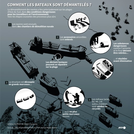 Une affirmation qui laisse sceptiques des ONG spécialisées comme Shipbreaking Platform ou Robin des Bois: certains bateaux contiennent des dizaines de tonnes d’amiante à bord.