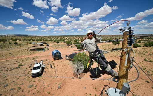 Tonalea (États-Unis) (AFP) – En plein désert, à environ deux heures de route du Grand Canyon, des ouvriers plantent des poteaux électriques dans la terre orange et bricolent par 38°C pour faire courir des câbles jusqu’à la maison de Christine Shorty.