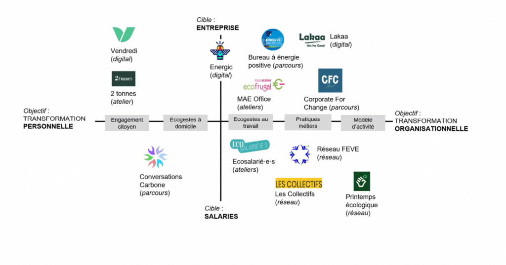 Changer les entreprises de l’intérieur s’avère l’un des objectifs des Collectifs, ils regroupent des réseaux de salariés mobilisés pour l’environnement. Nicolas [les personnes identifiées uniquement par leur prénom souhaitent préserver leur anonymat] est membre cofondateur d’un collectif créé il y a deux ans dans sa société. « On s’est aperçus qu’on avait déjà des engagements individuels, éventuellement des engagements associatifs ou locaux dans nos communes. Pour nous, ça nous manquait d’aligner ces différents engagements avec ceux de notre vie professionnelle ». Les Collectifs ne sont pas là pour remplacer la responsabilité sociétale des entreprises (RSE) mais pour servir d’accélérateur de leur transition écologique.