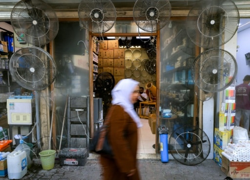 Ventilateurs devant un magasin de Bagdad, le 27 juillet 2025 © AFP AHMAD AL-RUBAYE