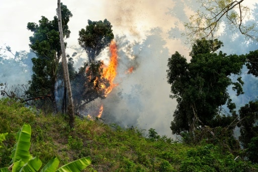 Ironi Bé (France) (AFP) – Sur la route nationale 2 à Ironi Bé, dans l’est de Mayotte, un épais nuage de fumée enveloppe les voitures. En contrebas, des flammes issues d’un brûlis grignotent arbres et buissons. Les alizés les attisent sur une végétation fragilisée par le cyclone Chido.