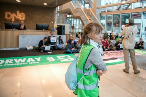 D’autres militants ont envahi et occupé le hall d’entrée de la principale banque norvégienne, DNB, pour exiger qu’elle cesse de financer le développement d’énergies fossiles. « DNB est la banque nordique qui investit le plus d’argent dans le pétrole et le gaz, presque trois fois plus que la deuxième », a affirmé une des militantes, Lea Wiggen, citée dans le communiqué.