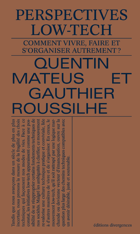 Perspectives Low-tech – Comment vivre, faire et s’organiser autrement ? de Quentin Mateus et Gauthier Roussilhe publié aux éditions divergences en 2024.