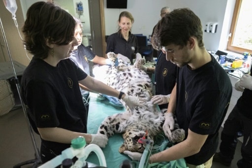 Des vétérinaires procèdent à l’insémination artificielle de Khala, une femelle panthère de l’Amour, le 9 octobre 2025 au zoo de Mulhouse, dans le Haut-Rhin