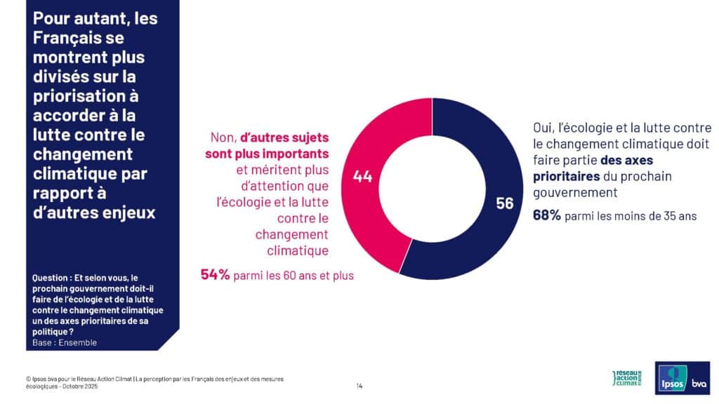 «En effet, l’écologie est un sujet prioritaire pour un peu plus de la moitié des Français (1 sur 2), un chiffre qui monte aux deux tiers (68 %) chez les moins de 35 ans.»