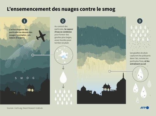 New Delhi (AFP) – L’Inde a provoqué, pour la première fois jeudi, une pluie artificielle au-dessus de New Delhi, en ensemençant des nuages avec un avion pour dissiper le brouillard de pollution toxique qui enveloppe la capitale depuis quelques jours.