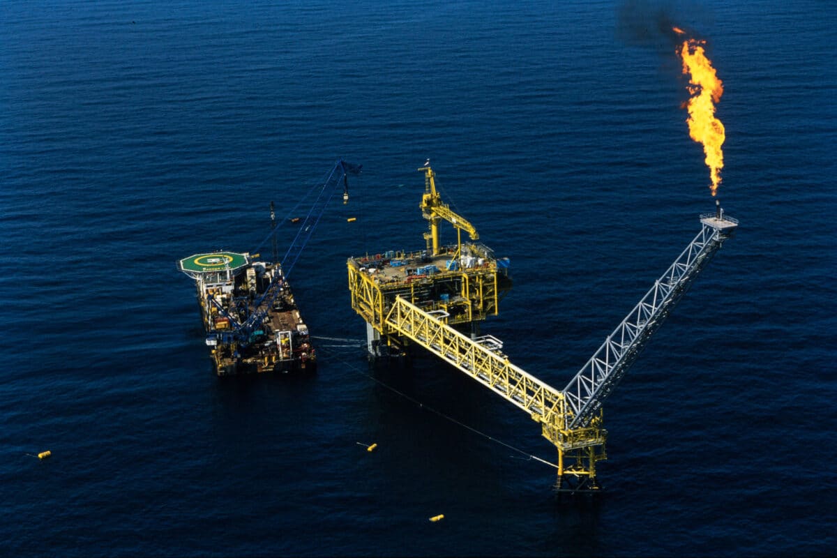 Barge Smit Bornéo et Plateforme MOQ Well Head - Champs pétrolifères du nord - Qatar © Yann Arthus-Bertrand