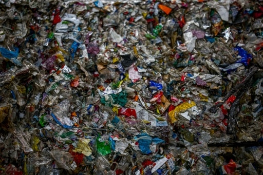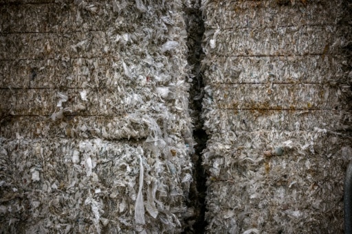Des morceaux de plastique triés et compressés dans l'unité de recyclage chimique de la plateforme Gandpuits-Gargenville de TotalEnergies à Grandpuits-Bailly-Carrois, le 17 mars 2026 en Seine-et-Marne © AFP Guillaume BAPTISTE