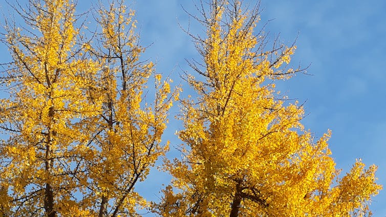 Tout comme la welwitschia, le séquoia de Chine et le pin de Wollemi, le ginkgo appartient au groupe des gymnospermes, dont les graines sont souvent protégées dans des cônes, comme c’est le cas pour les sapins et les épicéas. Les gymnospermes, à la différence des sophoras ou des catalpas par exemple, ne sont donc pas des plantes à fleurs (appelées, elles, angiospermes).