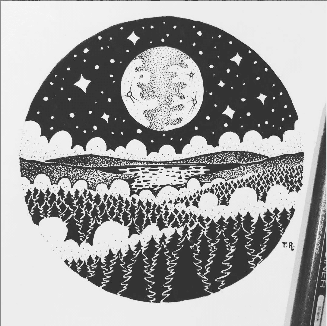 Tom est un artiste spécialisé dans le pointillisme, une technique minutieuse qui lui permet de dessiner des paysages en noir et blanc envoutants et précis. Plongez avec lui au milieu de montagnes et de forêts mystiques…